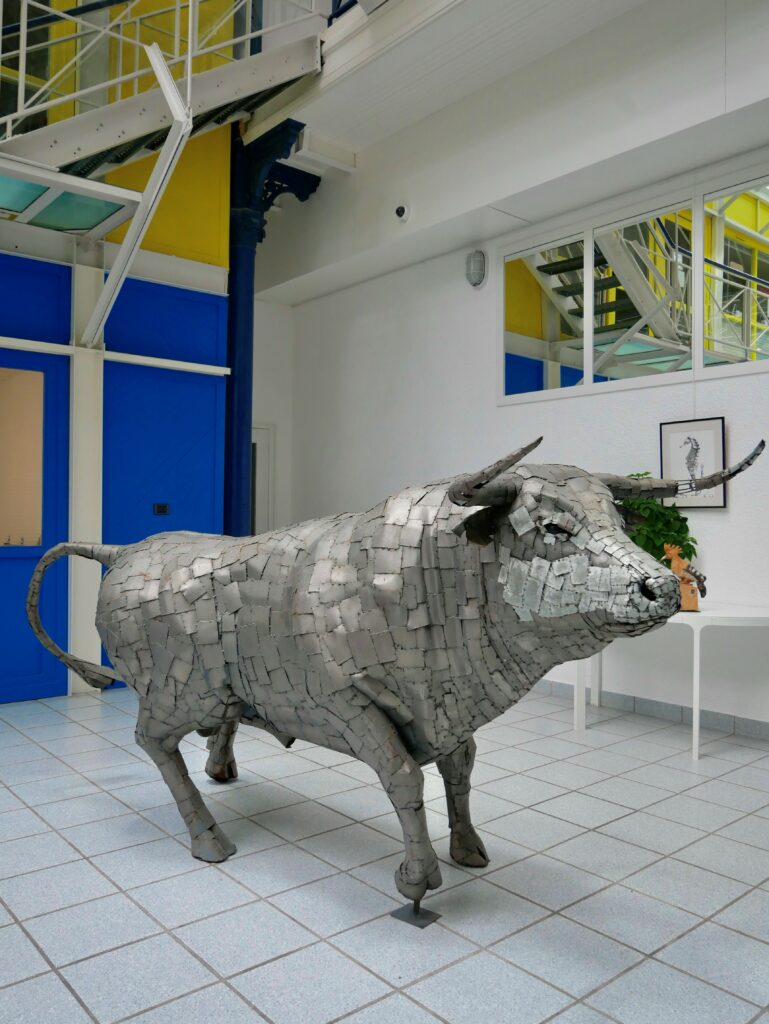 Plus qu’une œuvre, ce taureau raconte une histoire et apporte une dimension unique à la Grande Halle Oberthur.